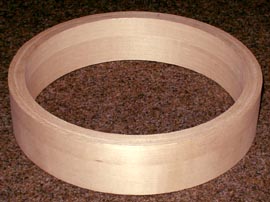 3-ply rim of hard maple. Wallthickness = 1.8 cm, outer diameter = 28 cm, hight = 6 cm